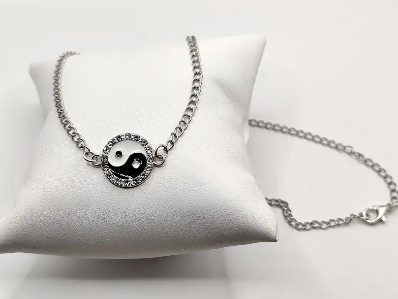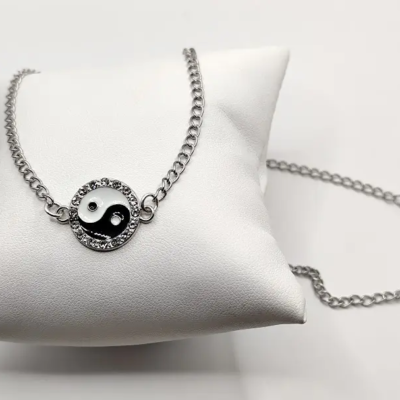 Ατσάλινο κολιέ με στοιχείο Yin Yang με σμάλτο και zircon