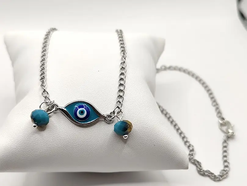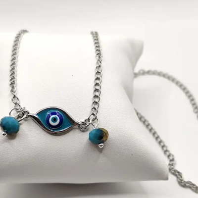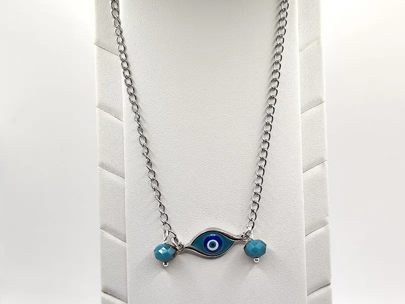 Κολιέ ατσάλινη αλυσίδα στοιχείο ματάκι με χάντρες.