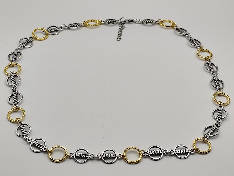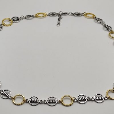 Χειροποίητο κολιέ δίχρωμα, με επιχρυσωμένους κρίκους 18-24k και κρίκους από ανοξείδωτο ατσάλι με ιδιαίτερη λεπτομέρεια στο κέντρο.