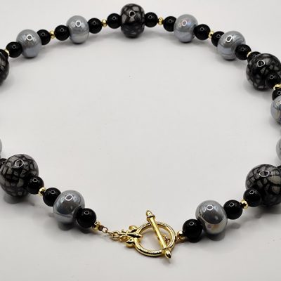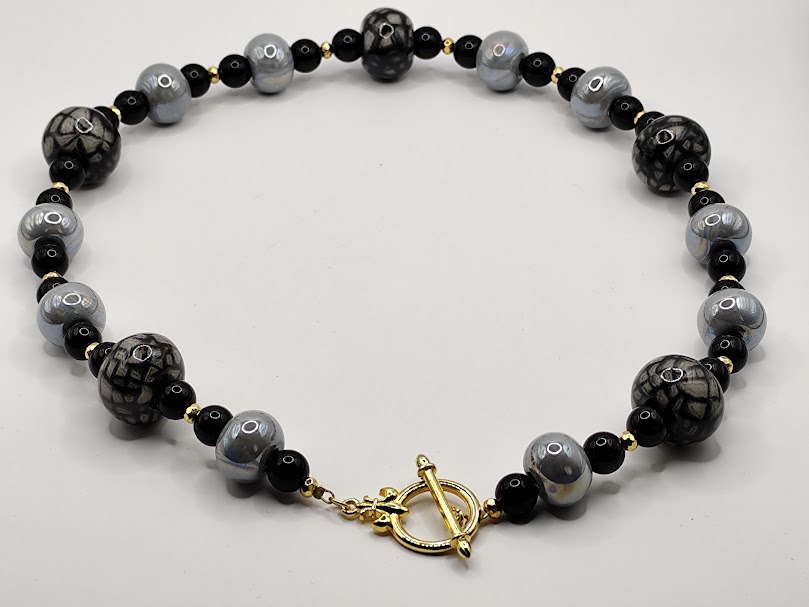 Κολιέ με κεραμικές χάντρες και πλαϊνό κούμπωμα με σχέδιο