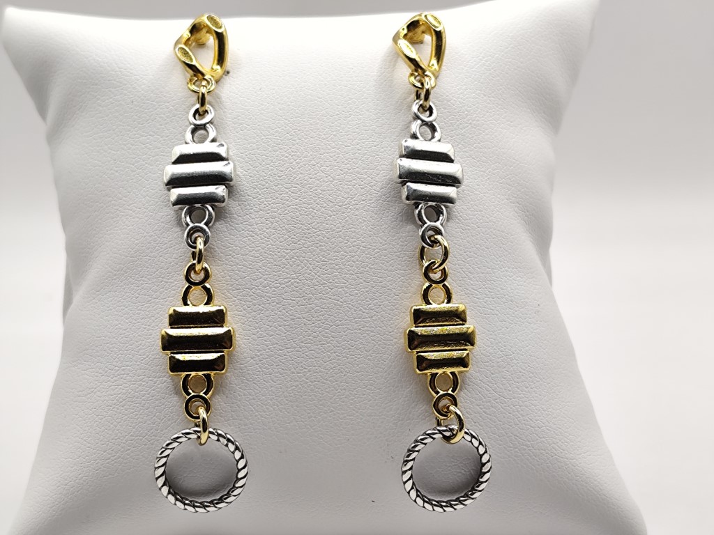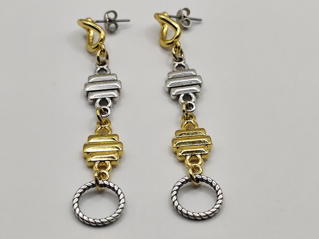 Χειροποiητα μακριά σκουλαρίκια δίχρωμα, φτιαγμένα με μοτίφ και κρίκους από ανοξείδωτο ατσάλι και επιχρυσωμένα 18-24k