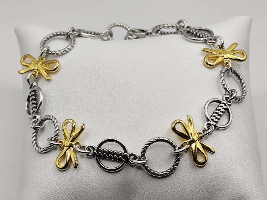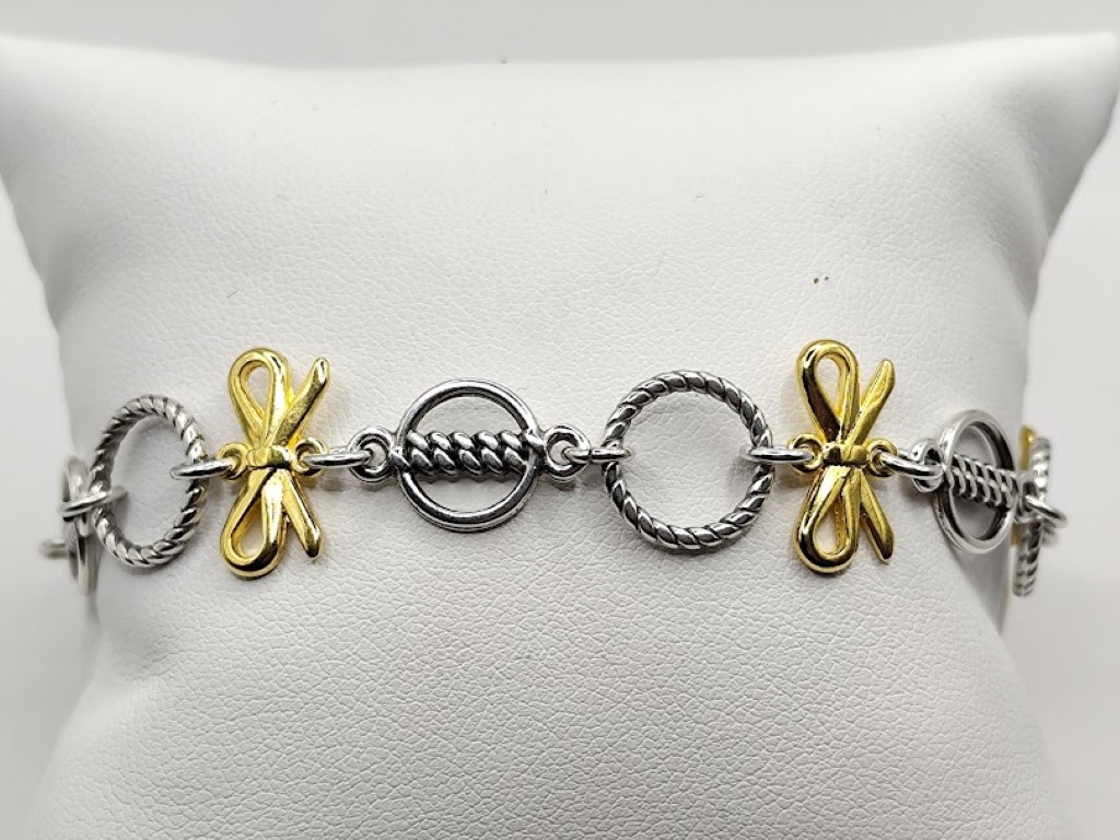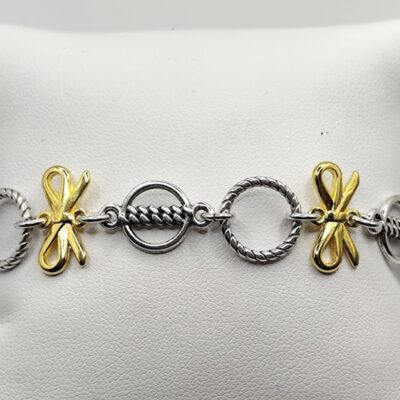 Χειροποίητο βραχιόλι φτιαγμένο με μεράκι με μεταλλικούς κρίκους απλούς ή με λεπτομέρεια μέσα σε συνδιασμό με φιογκάκια. Τα μοτίφ όλα είναι από ανοξείδωτο ατσάλι ή επιχρυσωμένα 18 – 24κ.