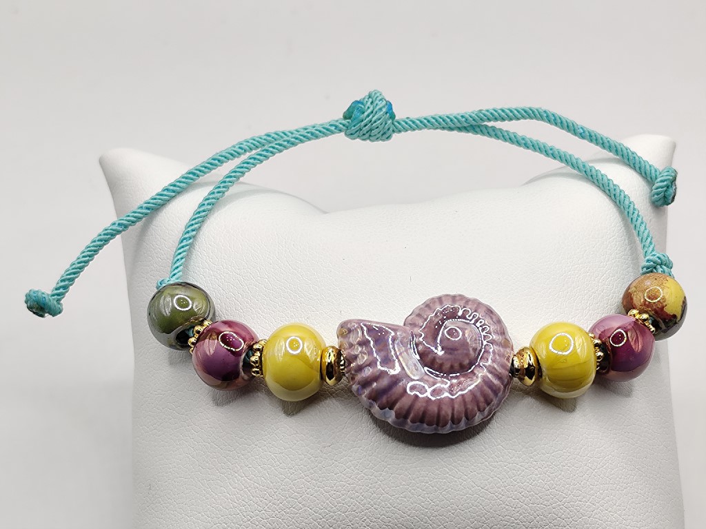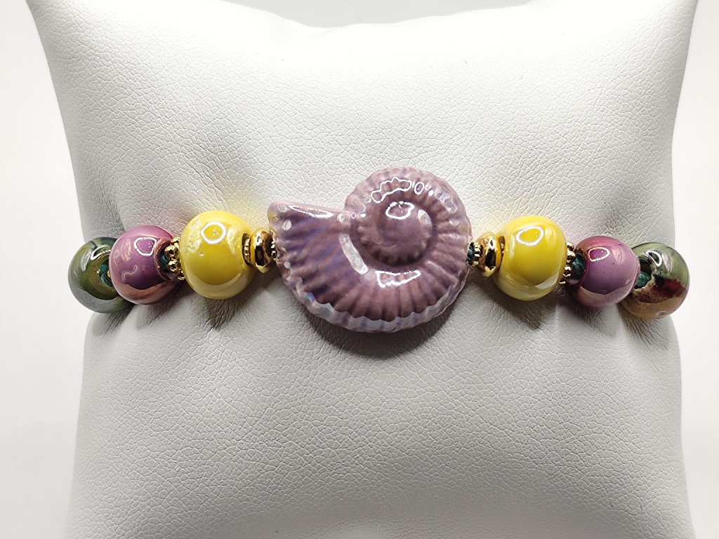 Βραχιόλι με κεραμικές χάντρες και σαλιγκάρι στο κέντρο