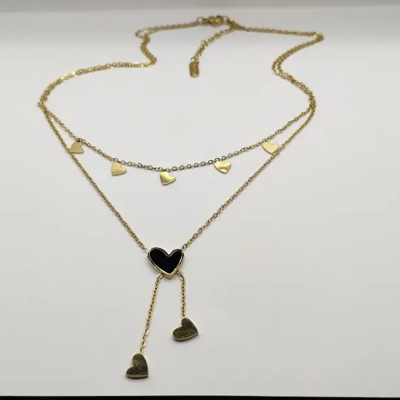Mnimal κολιέ διπλό με αλυσίδα καρδιές και κεντρικό στοιχείο καρδιά με σμάλτο. Επιχρυσωμένο 18 – 24κ.