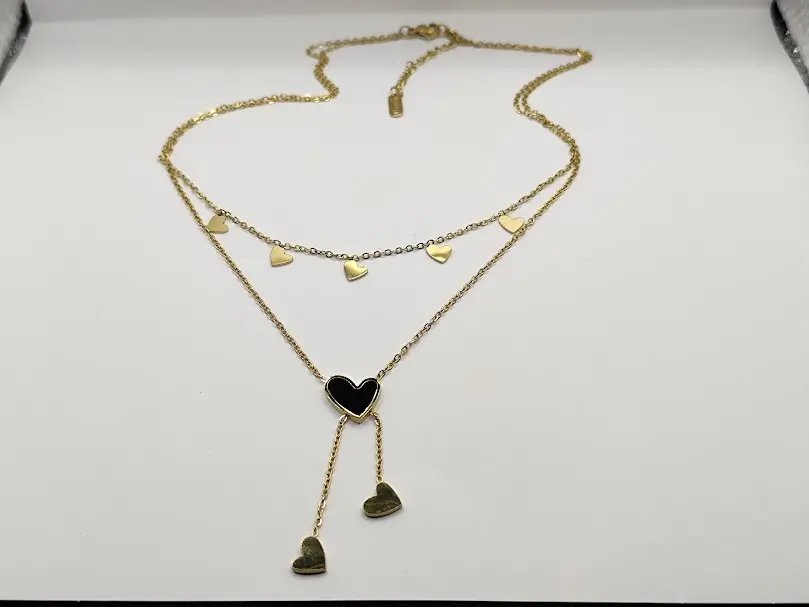 Κολιέ διπλό με αλυσίδα και καρδιές