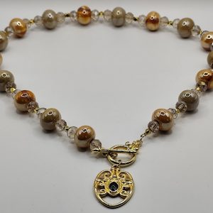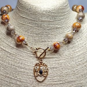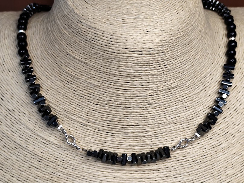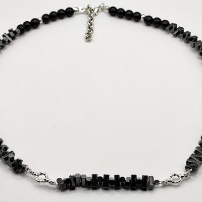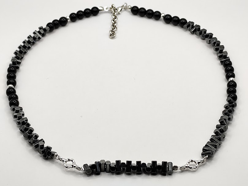 Χειροποίητο κολιέ,ιδιαίτερο, φτιαγμένο με αιματίτη μαύρες χάντρες και μεταλλικά στοιχεία από ατσάλι.