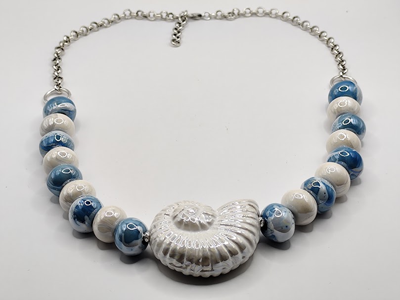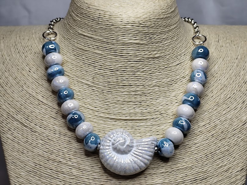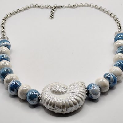 Κολιέ με αλυσίδα κεραμικές χάντρες – σαλιγκάρι μεγάλο