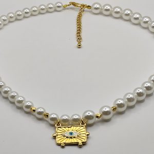 Χειροποίητο κολιέ φτιαγένο με χάντρες και επιχρυσωμένα μοτιφ 18-24κ.