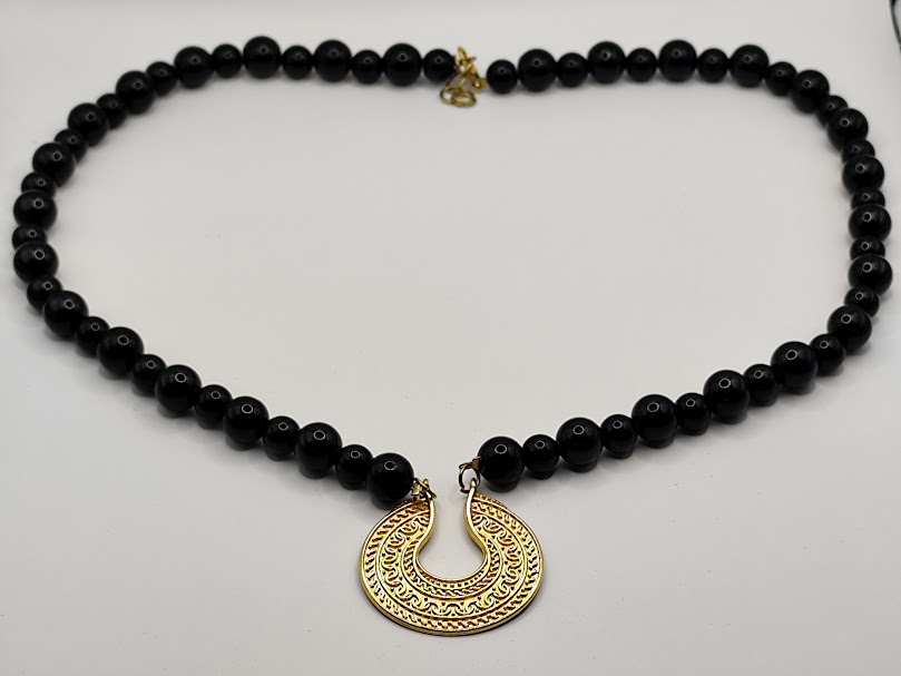 Εντυπωσιακό χειροποίητο κολιέ με χάντρες 2 μεγεθών και κεντρικό στοιχείο αιγυπτιακό με σκάλισμα επιχρυσωμένο 18-24k.