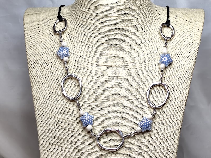 Κολιέ με κρίκους και κεραμικούς αστερίες