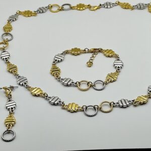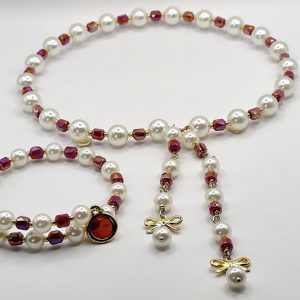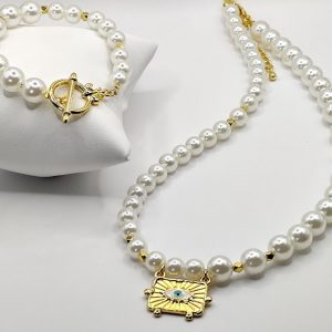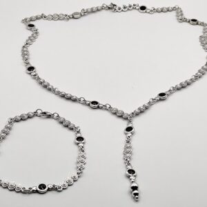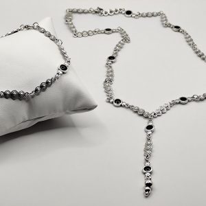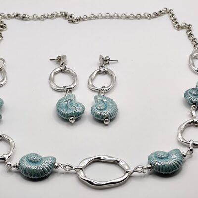 Χειροποίητο σετ που αποτείται από κολιέ 80cm και σκουλαρίκια 7cm. Φτιαγμένο με κεραμικόύς αστερίες επισμαλτωμένούς και ασύμμετρους ατσάλινους κρίκους.