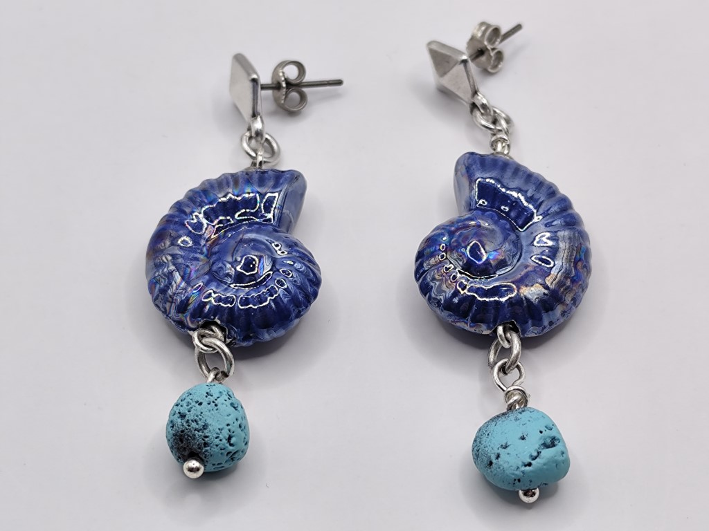 Σκουλαρίκια δίχρωμα με λάβα και κεραμικό σαλιγκάρι