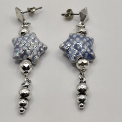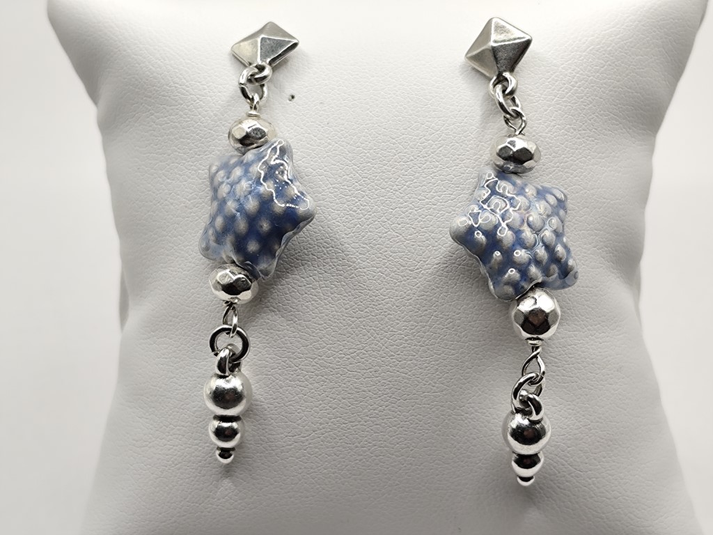 Εντυπωσιακά χειροποίητα μακριά σκουλαρίκια, φτιαγμένα με κεραμικές χάντρες και σαλιγκάρια επισμαλτωμένα και κόκκινη λάβα.