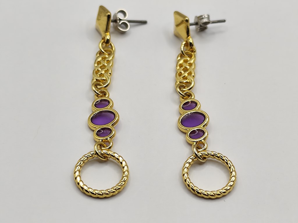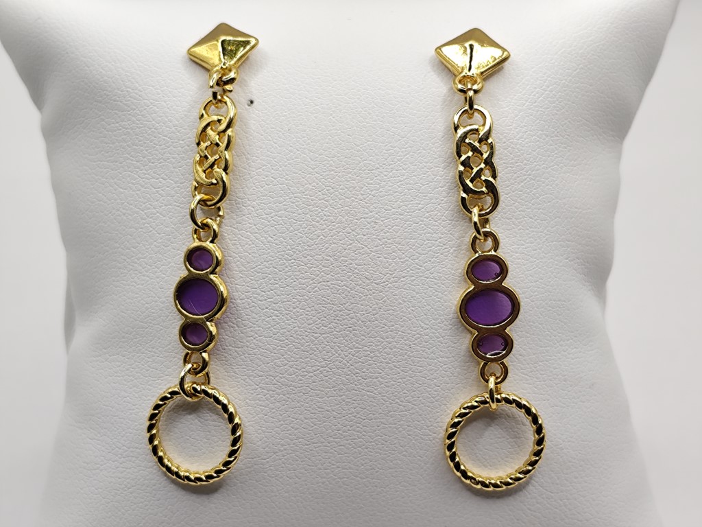 Χειροποίητα μακριά σκουλαρίκια, φτιαγμένα με μοτίφ και κρίκους επιχρυσωμένα 18-24k.