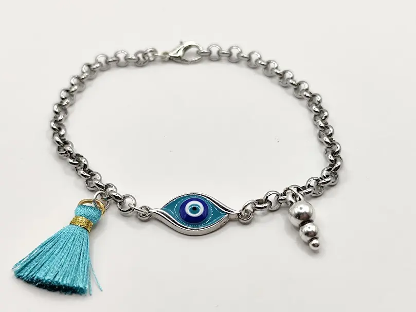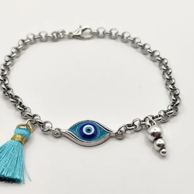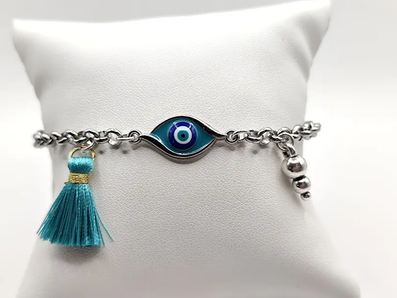 Βραχιόλι ατσάλινη αλυσίδα στοιχείο ματάκι με σμάλτο φουντάκι.