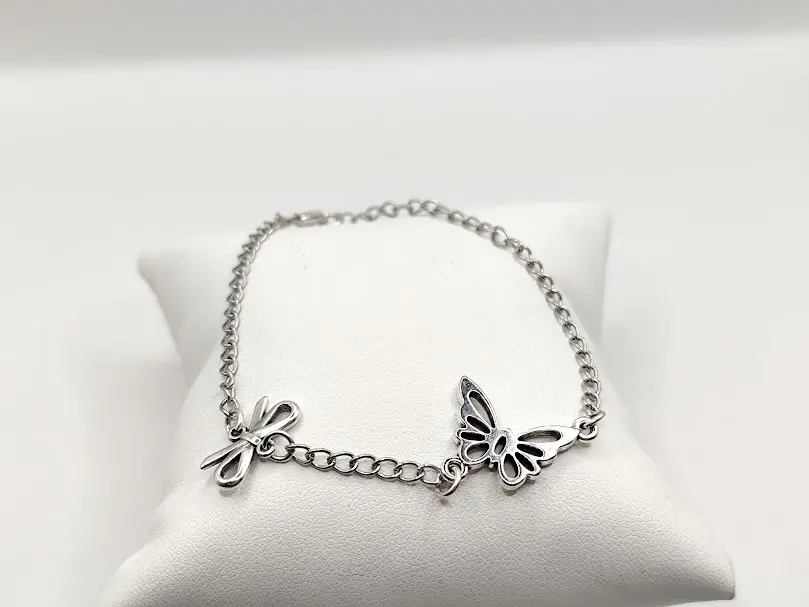 Κομψό ατσάλινο βραχιόλι με πεταλούδα και φιογκάκι. Waterproof, υποαλλεργικό και ιδανικό για καθημερινή χρήση ή δώρο.
