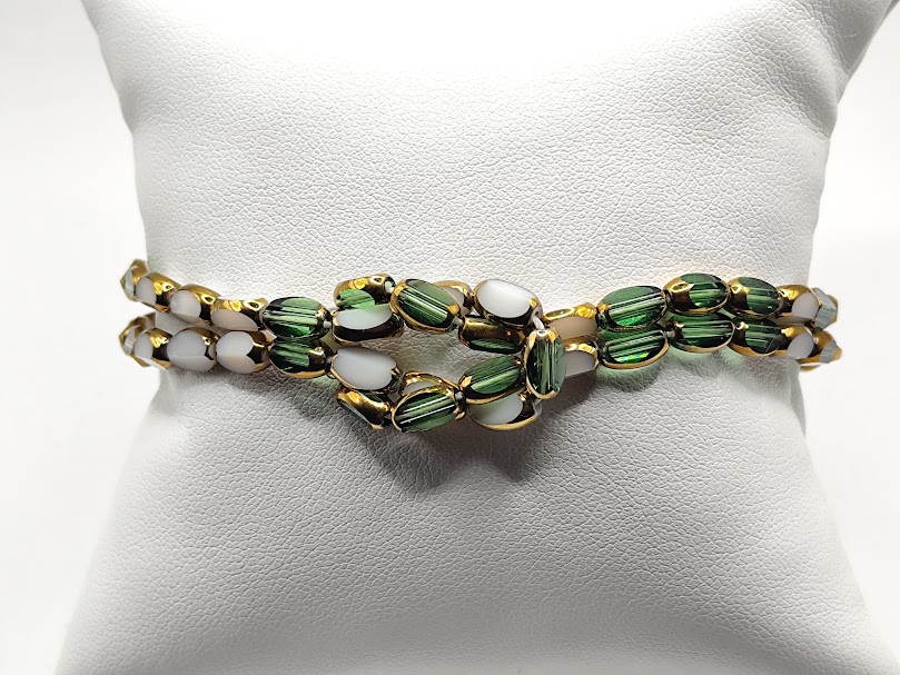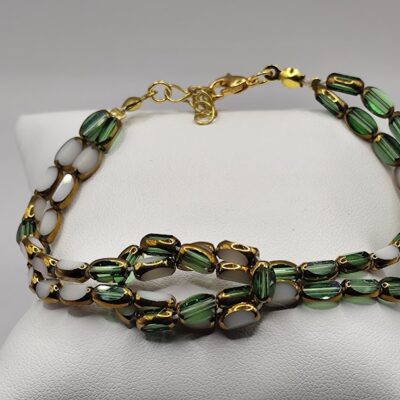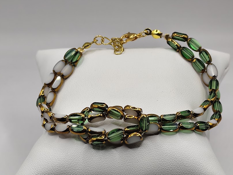 Χειροποίητο βραχιόλι δίχρωμο φτιαγμένο με κρύσταλλους σμαραγδί και άσπρους.