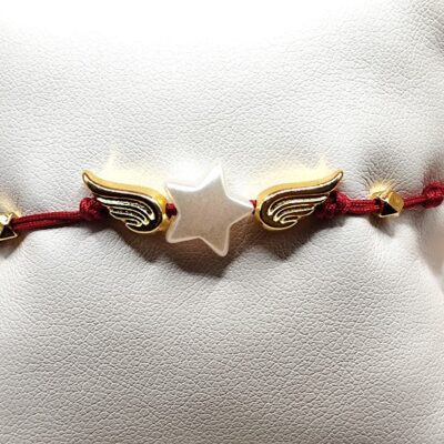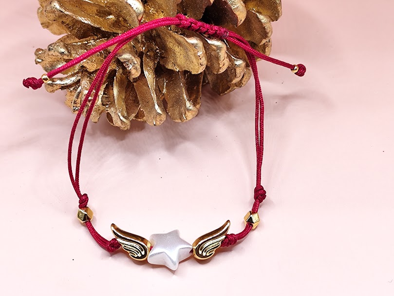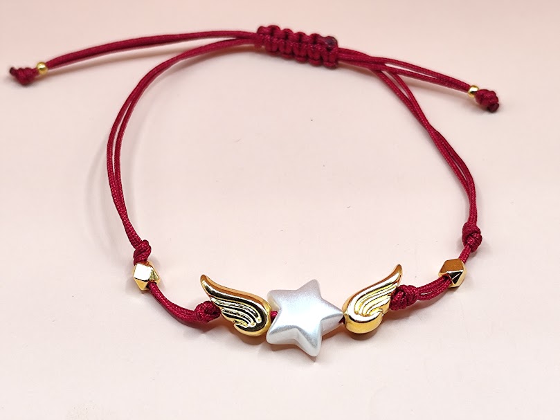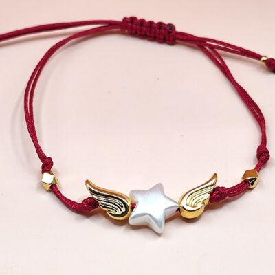 Χειροποίητο βραχιόλι γούρι φτιαγμένο με στοιχείο πέρλα σε σχήμα αστέρι, επιχρυσωμένα στοιχεία 18-24κ σε μπορντό κορδόνι.