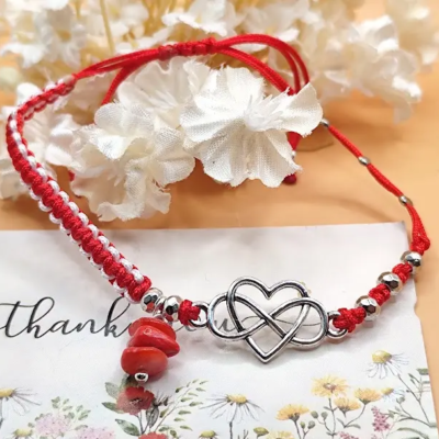 Χειροποίητο μαρτάκι με ατσάλινο στοιχείο καρδιά – άπειρο