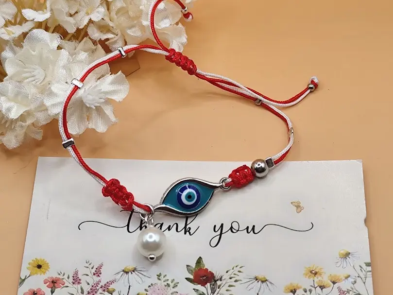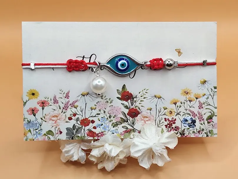 Χειροποίητο μαρτάκι με στοιχείο ματάκι και πέρλα.