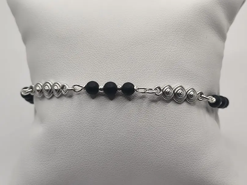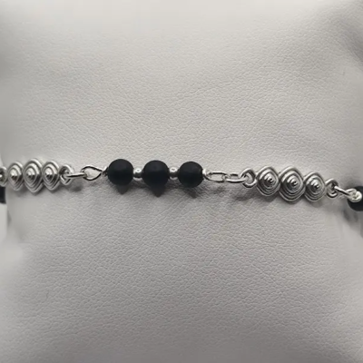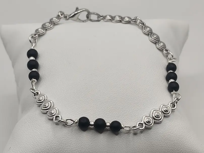 Χειροποίητο βραχιόλι φτιαγμένο με ατσάλινα μοτιφ και μαύρε χάντρες.