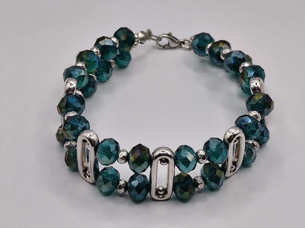 Χειροποίητο βραχιόλι με πολυτελή όψη φτιαγμένο με σμαραγδί κρύσταλλους και μεταλλικά στοιχεία από ατσάλι για αντοχή και διαχρονική λάμψη