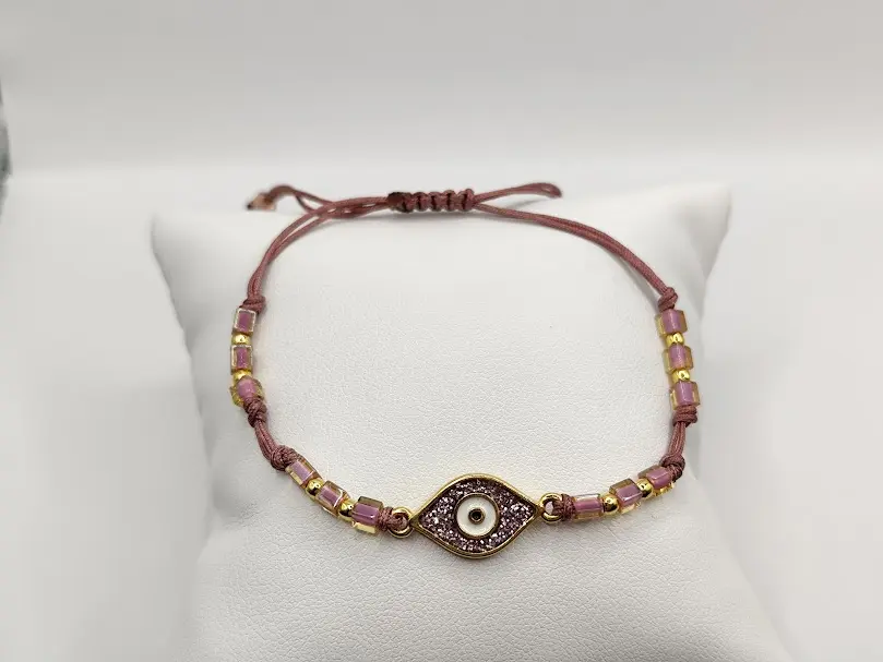 Χειροποίητο βραχιόλι με ματάκι και κρυστάλλους τύπου μακραμέ.