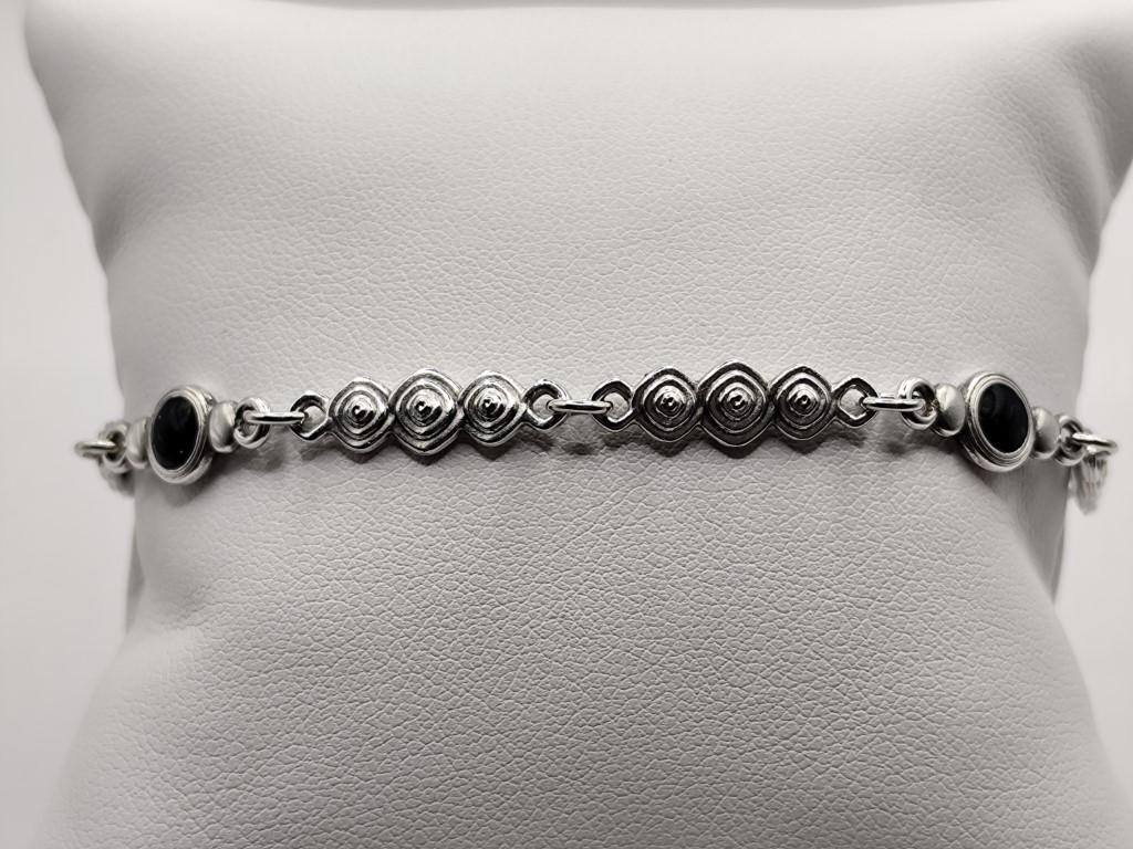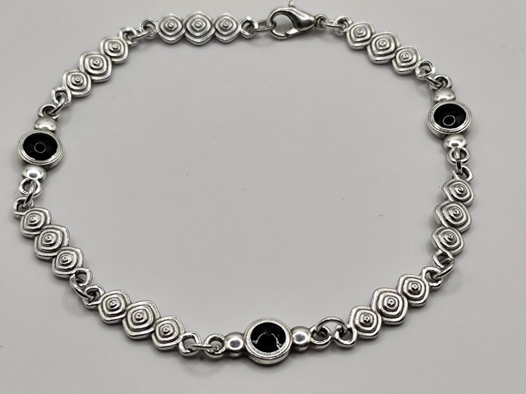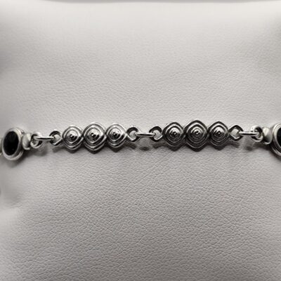 Χειροποίητο βραχιόλι, φτιαγμένο με μοτίφ από ανοξείδωτο ατσάλι και με ιδιαίτερη λεπτομέρεια μοτίφ με μαύρο σμάλτο.