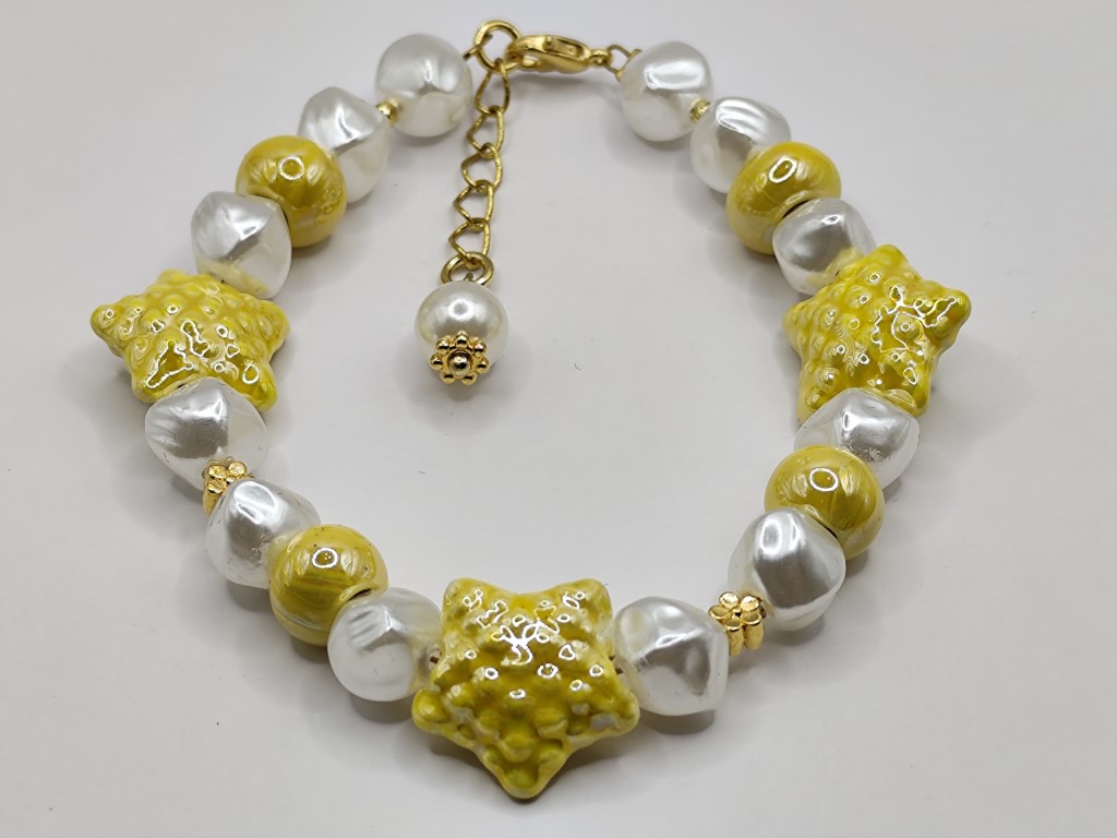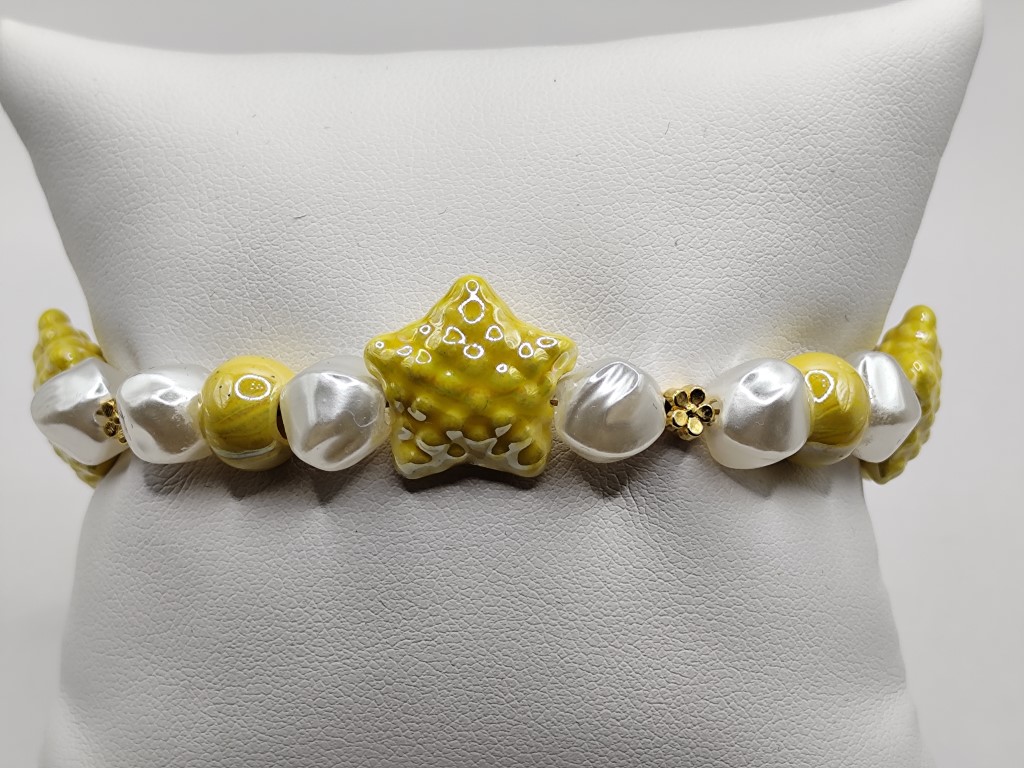 Βραχιόλι με πέρλες ασύμμετρες και κεραμικούς αστερίες