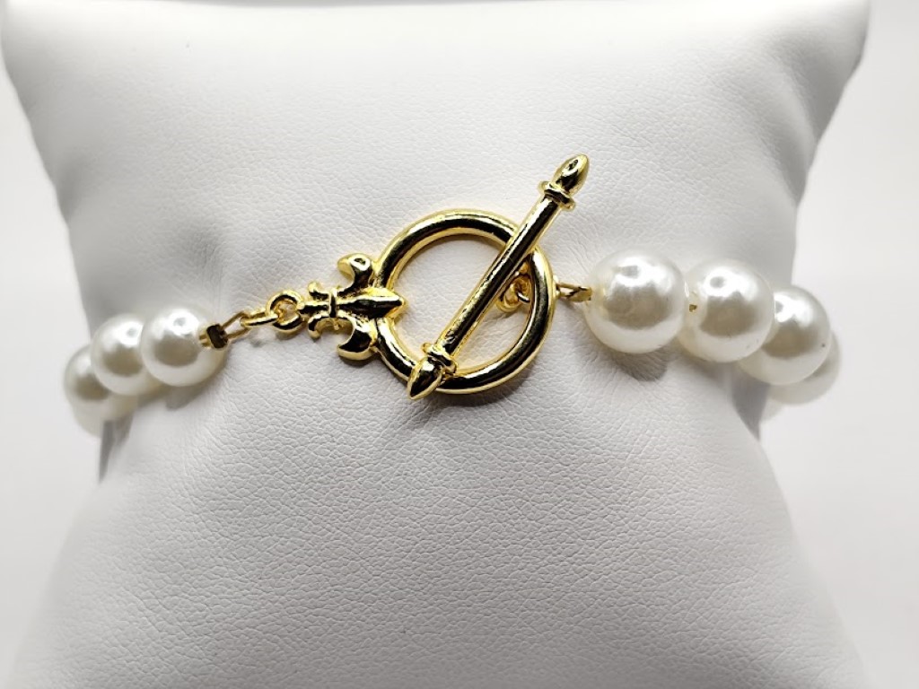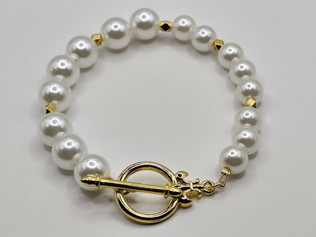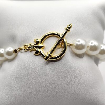 Χειροποίητο βραχιόλι,κομψό και διαχρονικό, φτιαγμένο με πέρλες και ιδιαίτερο κούμπωμα κόσμημα επιχρυσωμένο 18-24k.